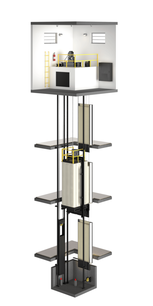 Esse modelo de elevador exige disponibilidade de espaço, na altura, que permita a instalação da casa de máquinas. O processo de manutenção se torna mais acessível, pois é todo realizado sem interferir na área de trânsito dos usuários do elevador.